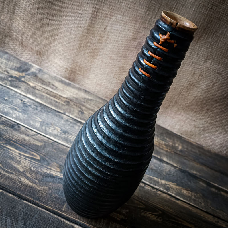 Le vase Alternance est bien plus qu’un simple objet décoratif. Il incarne une quête : celle de capturer l’essence du bois vivant, de dialoguer avec ses blessures et de sublimer ses imperfections. Tourné à la main dans du bois de pommier, brûlé selon des techniques traditionnelles, puis délicatement réparé avec une couture artisanale en cuir naturel, Alternance s’impose comme une œuvre d’équilibre entre force et fragilité.